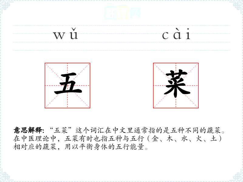 "五菜"的意思解释、五菜是什么意思由翻译网汉语词典查词提供。