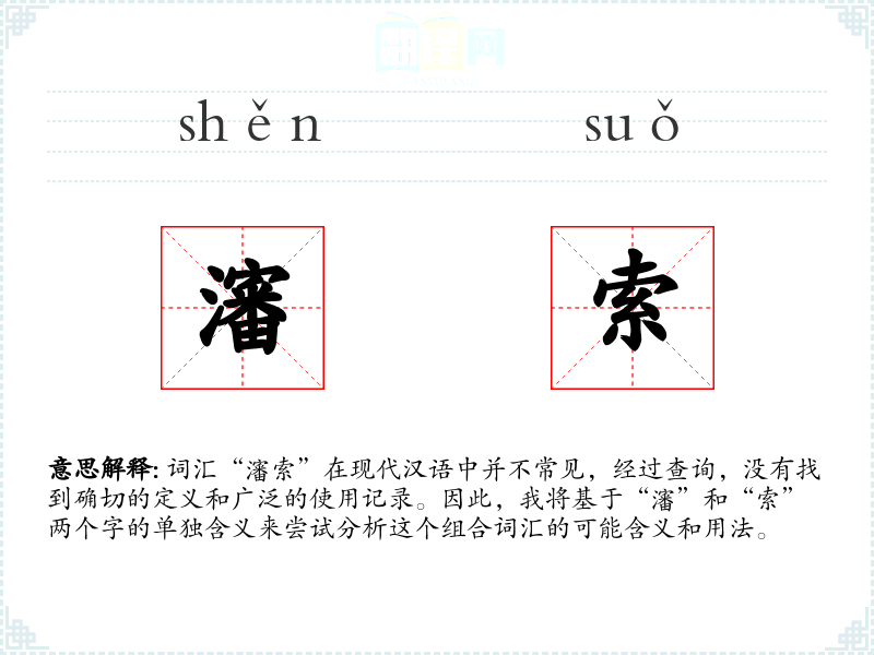 由于“瀋索”不是一个常用词汇,难以提供具体的视觉和听觉联想。
