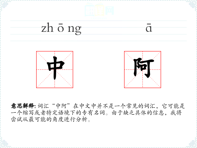 词汇“中阿”在中文中并不是一个常见的词汇,它可能是一个缩写或者特定语境下的专有名词。由于缺乏具体的信息,我将尝试从最可能的角度进行分析。