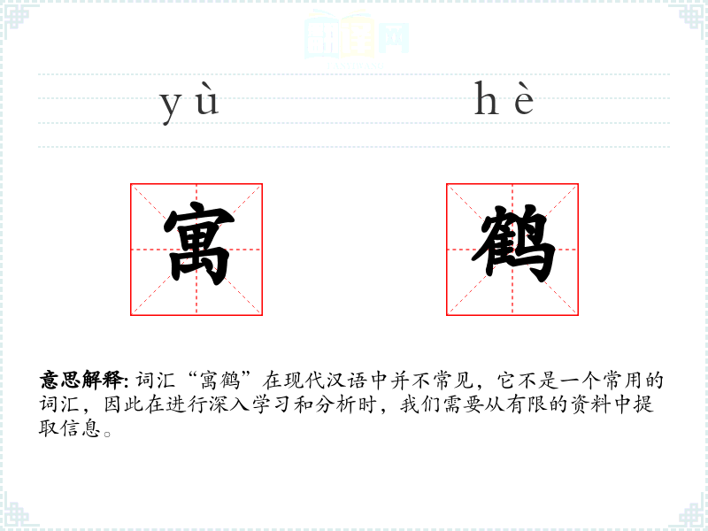 词汇“寓鹤”在现代汉语中并不常见,它不是一个常用的词汇,因此在进行深入学*和分析时,我们需要从有限的资料中提取信息。