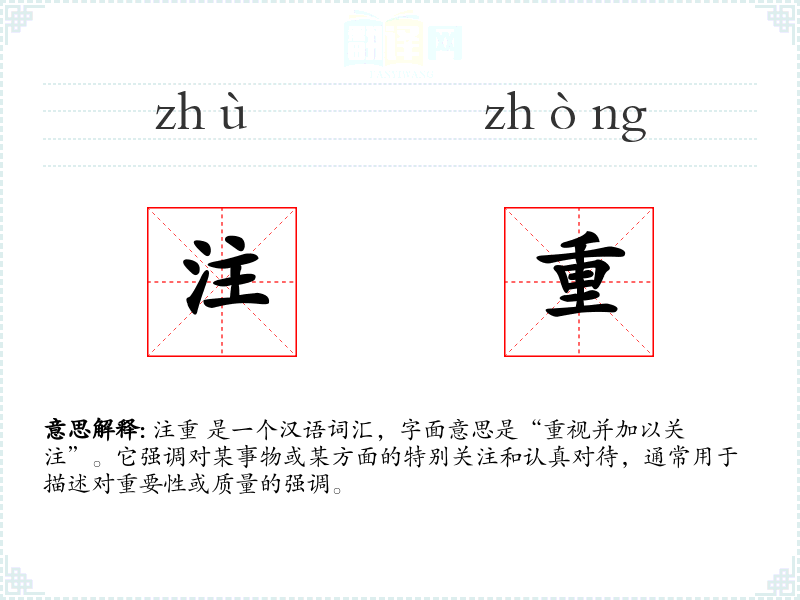 注重 是一个汉语词汇,字面意思是“重视并加以关注”。它强调对某事物或某方面的特别关注和认真对待,通常用于描述对重要性或质量的强调。