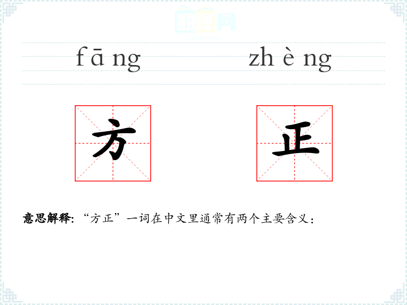 “方正”一词源自古代汉语,最初用于描述物体的形状,后来扩展到描述人的品行。在古代文献中,如《论语》中就有“君子坦荡荡,小人长戚戚”的描述,间接体现了“方正”的品行意义。