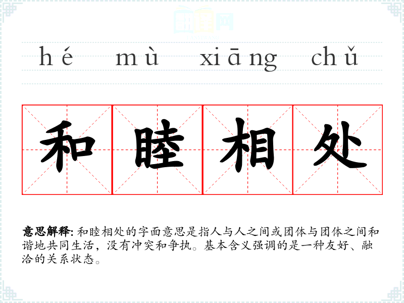- 文学:在文学作品中,“和睦相处”常用来描述人物之间的关系,如家庭成员、朋友或邻里之间的和谐。