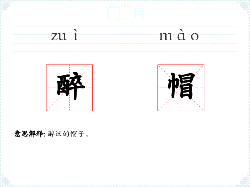 醉帽的分字解释