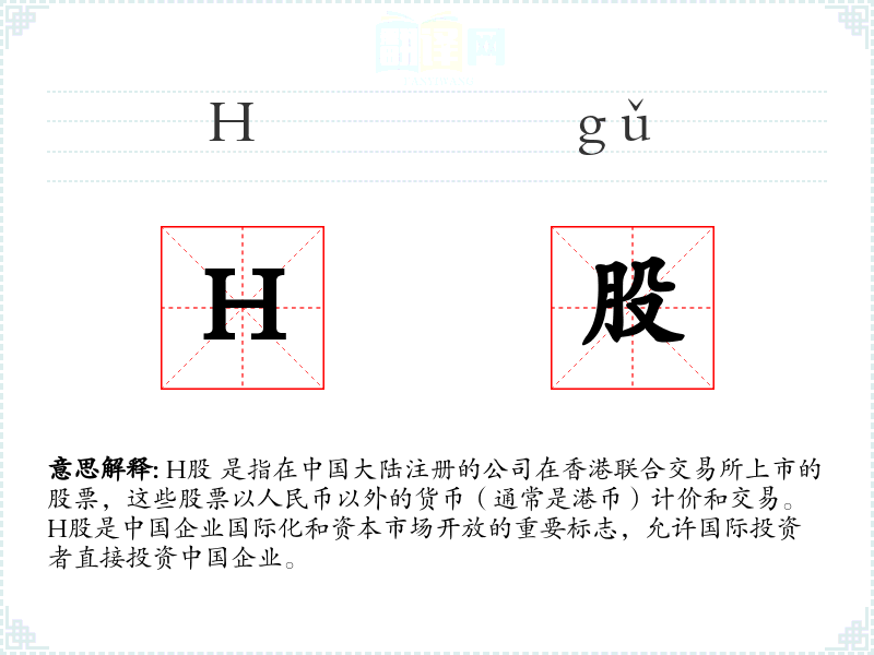 在不同语言或文化中,H股可能被翻译为“H-shares”或“H股”,但其核心含义保持一致,即在香港上市的**大陆公司股票。