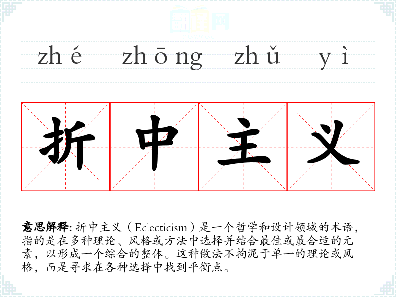 折中主义(Eclecticism)是一个哲学和设计领域的术语,指的是在多种理论、风格或方法中选择并结合最佳或最合适的元素,以形成一个综合的整体。这种做法不拘泥于单一的理论或风格,而是寻求在各种选择中找到平衡点。