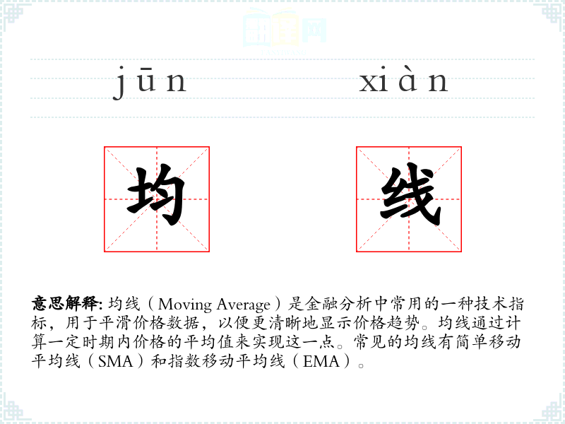 在金融领域,均线是技术分析的核心工具之一,用于预测股票、外汇、期货等金融产品的价格走势。在口语和非专业文学作品中,均线可能不会被直接提及,但其背后的概念——趋势分析——可能会被隐晦地使用。