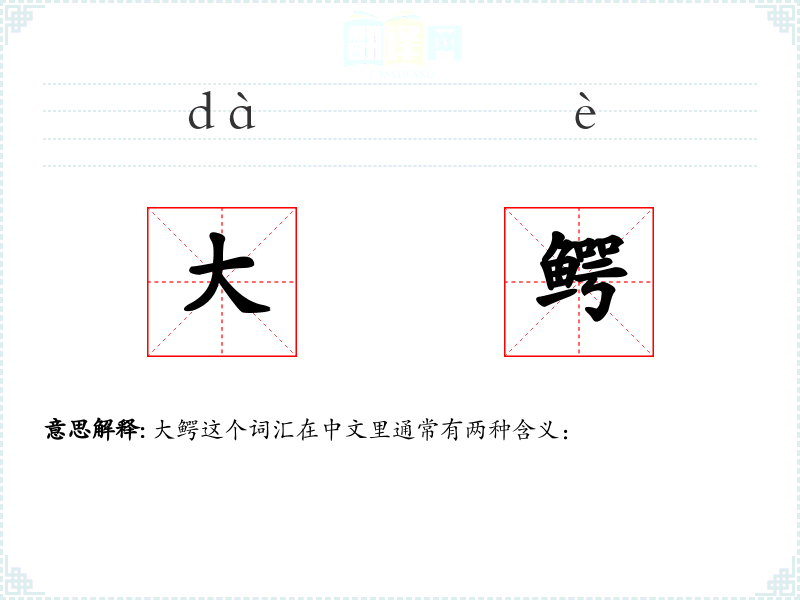 - 字面意思是指大型鳄鱼,即鳄鱼科中体型较大的物种。