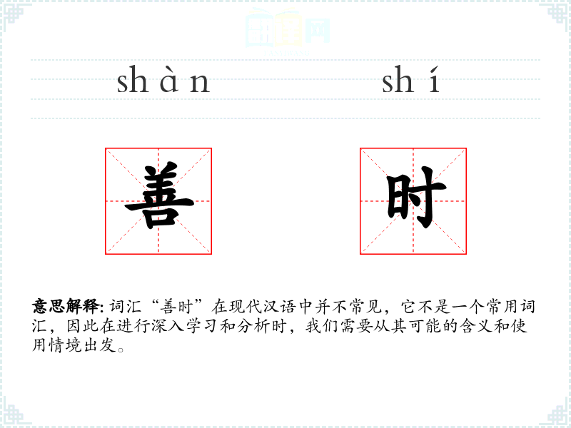 词汇“善时”在现代汉语中并不常见,它不是一个常用词汇,因此在进行深入学*和分析时,我们需要从其可能的含义和使用情境出发。