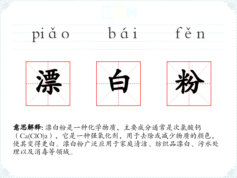 "漂白粉"的意思解释、漂白粉是什么意思由翻译网汉语词典查词提供。