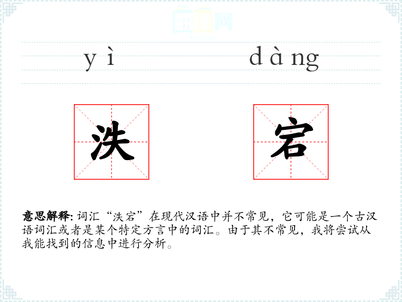词汇“泆宕”在现代汉语中并不常见,它可能是一个古汉语词汇或者是某个特定方言中的词汇。由于其不常见,我将尝试从我能找到的信息中进行分析。