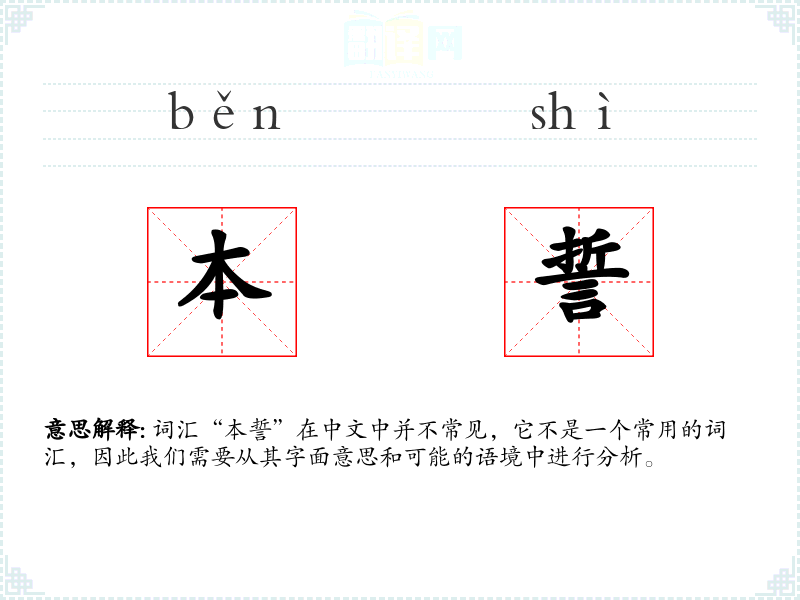 词汇“本誓”在中文中并不常见,它不是一个常用的词汇,因此我们需要从其字面意思和可能的语境中进行分析。