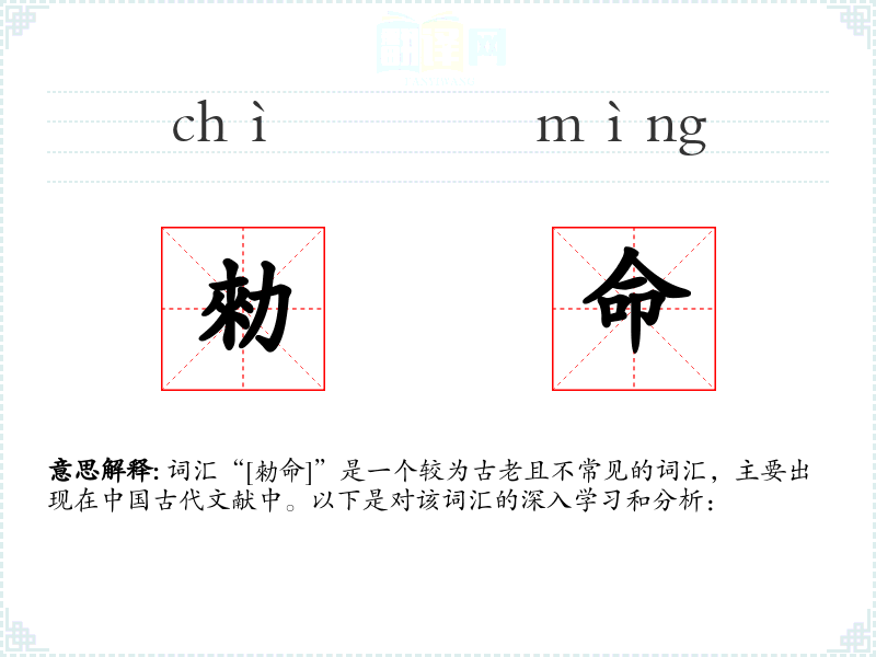 词汇“[勑命]”是一个较为古老且不常见的词汇,主要出现在*古代文献中。以下是对该词汇的深入学和分析: