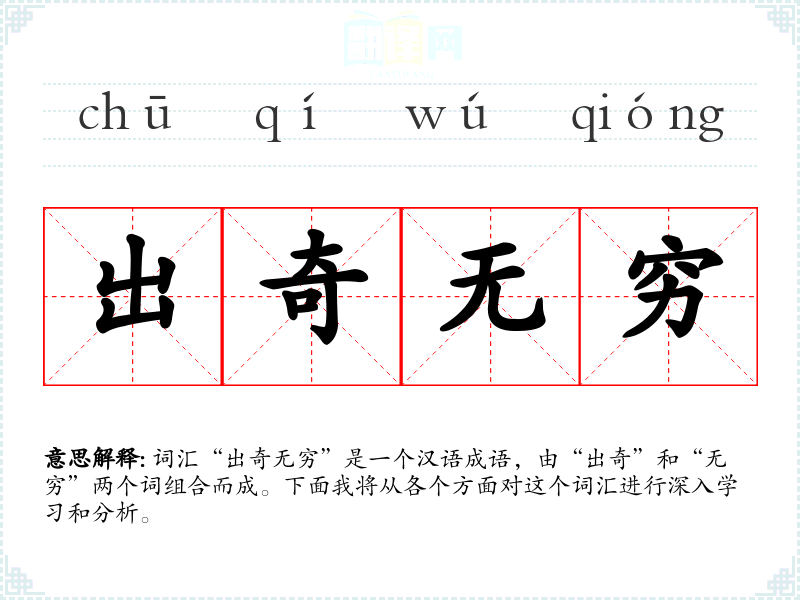 词汇“出奇无穷”是一个汉语成语,由“出奇”和“无穷”两个词组合而成。下面我将从各个方面对这个词汇进行深入学*和分析。