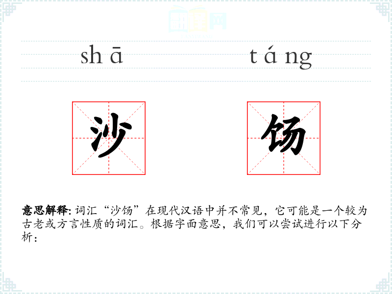 词汇“沙饧”在现代汉语中并不常见,它可能是一个较为古老或方言性质的词汇。根据字面意思,我们可以尝试进行以下分析: