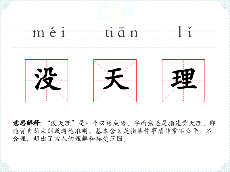 "没天理"的意思解释、没天理是什么意思由翻译网汉语词典查词提供。