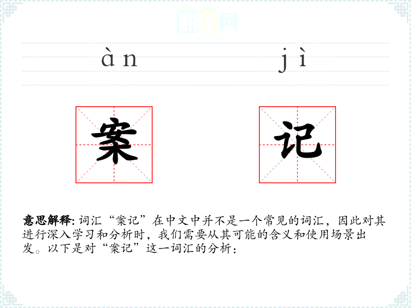 词汇“案记”在中文中并不是一个常见的词汇,因此对其进行深入学*和分析时,我们需要从其可能的含义和使用场景出发。以下是对“案记”这一词汇的分析: