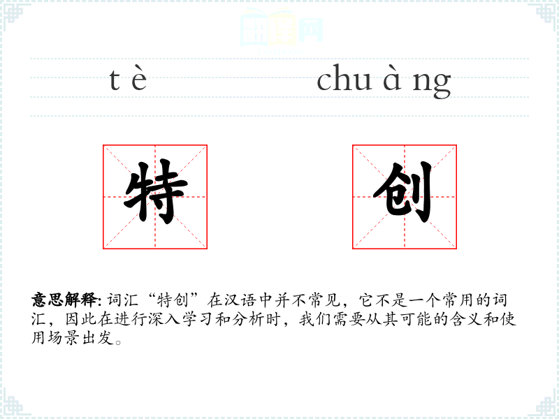 词汇“特创”在汉语中并不常见,它不是一个常用的词汇,因此在进行深入学习和分析时,我们需要从其可能的含义和使用场景出发。