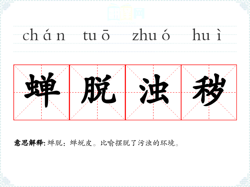 蝉脱:蝉蜕皮。比喻摆脱了污浊的环境。