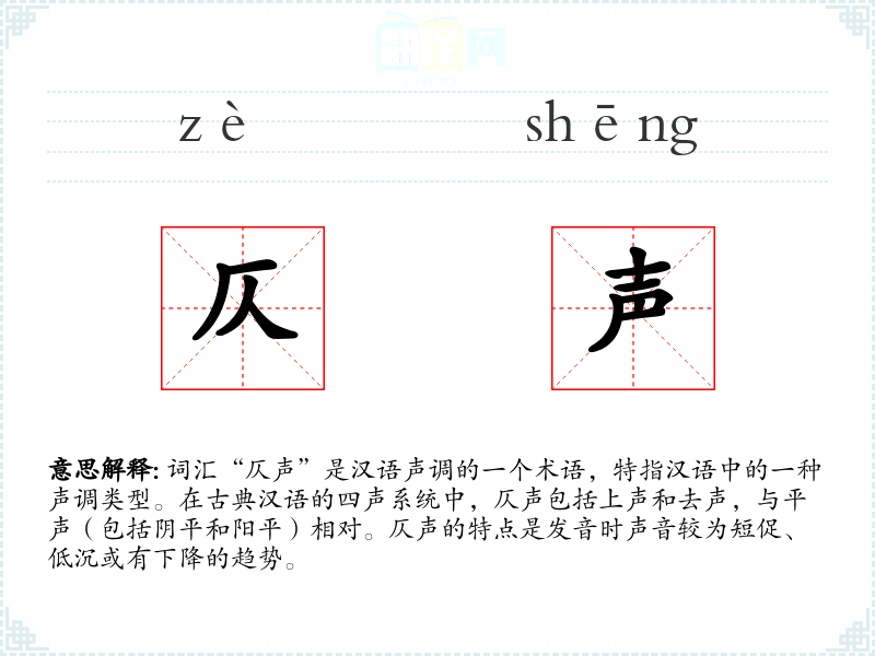 - 同义词:仄声的同义词较少,因为它是一个特定的声调分类。