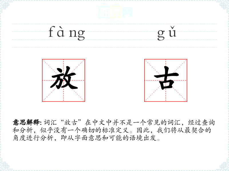 词汇“放古”在中文中并不是一个常见的词汇,经过查询和分析,似乎没有一个确切的标准定义。因此,我们将从最契合的角度进行分析,即从字面意思和可能的语境出发。