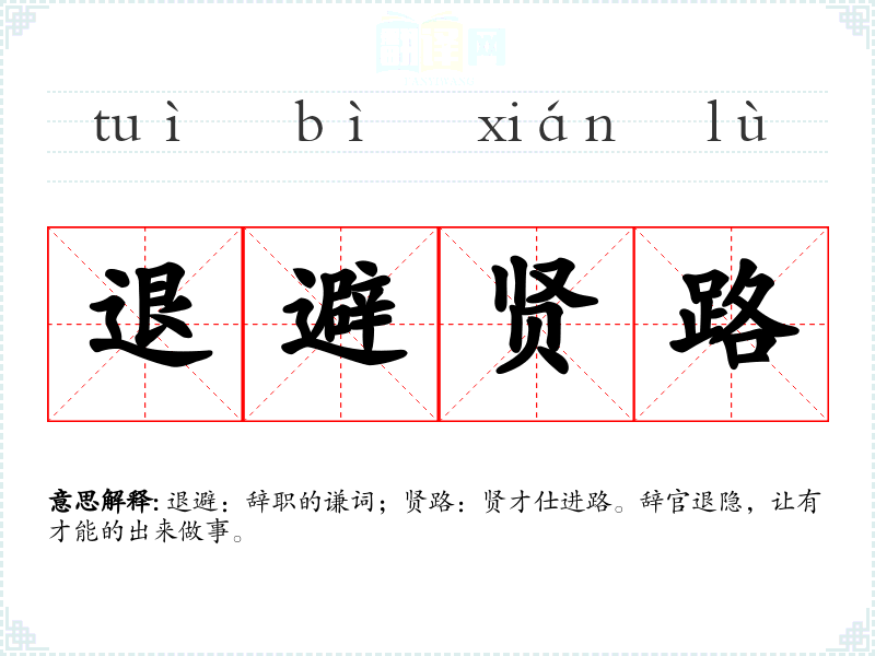 退避:辞职的谦词;贤路:贤才仕进路。辞官退隐,让有才能的出来做事。