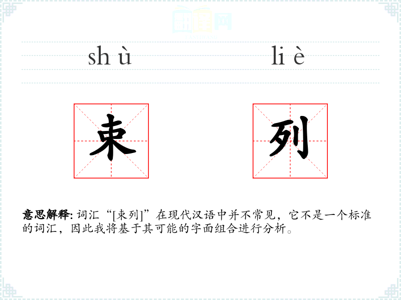 词汇“[束列]”在现代汉语中并不常见,它不是一个标准的词汇,因此我将基于其可能的字面组合进行分析。