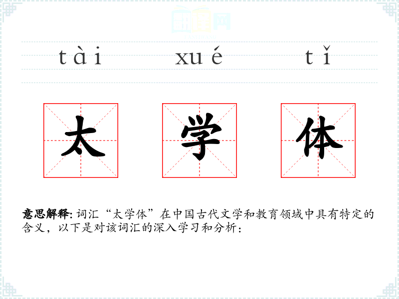 词汇“太学体”在*古代文学和教育领域中具有特定的含义,以下是对该词汇的深入学和分析:
