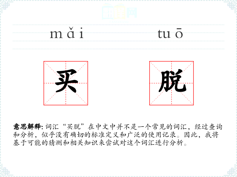 由于“买脱”不是一个标准词汇,我们可以尝试从字面意思来理解: