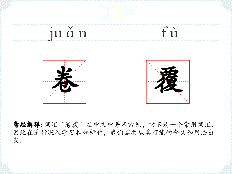 词汇“卷覆”在中文中并不常见,它不是一个常用词汇,因此在进行深入学习和分析时,我们需要从其可能的含义和用法出发。