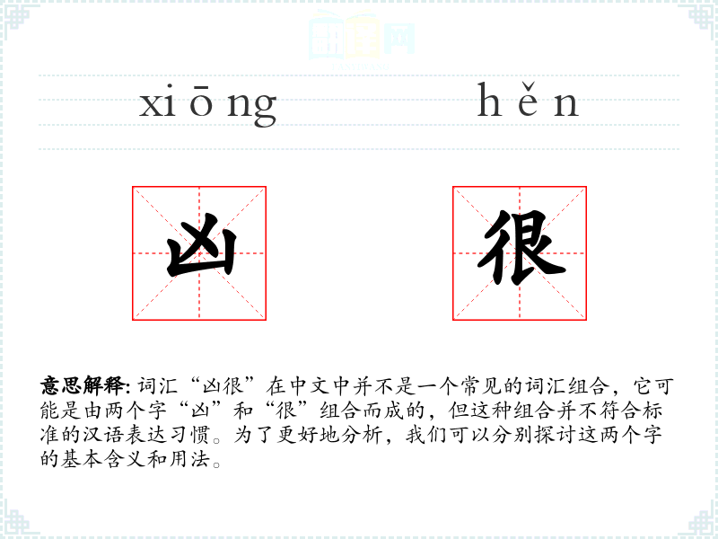 词汇“凶很”在中文中并不是一个常见的词汇组合,它可能是由两个字“凶”和“很”组合而成的,但这种组合并不符合标准的汉语表达*惯。为了更好地分析,我们可以分别探讨这两个字的基本含义和用法。