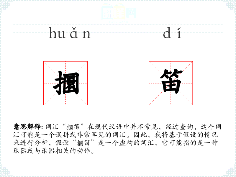 词汇“攌笛”在现代汉语中并不常见,经过查询,这个词汇可能是一个误拼或非常罕见的词汇。因此,我将基于假设的情况来进行分析,假设“攌笛”是一个虚构的词汇,它可能指的是一种乐器或与乐器相关的动作。