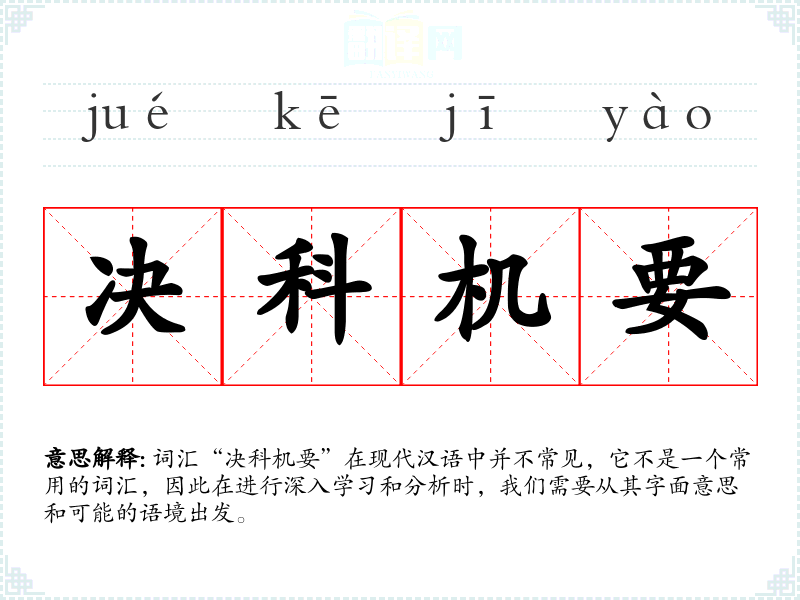 词汇“决科机要”在现代汉语中并不常见,它不是一个常用的词汇,因此在进行深入学*和分析时,我们需要从其字面意思和可能的语境出发。