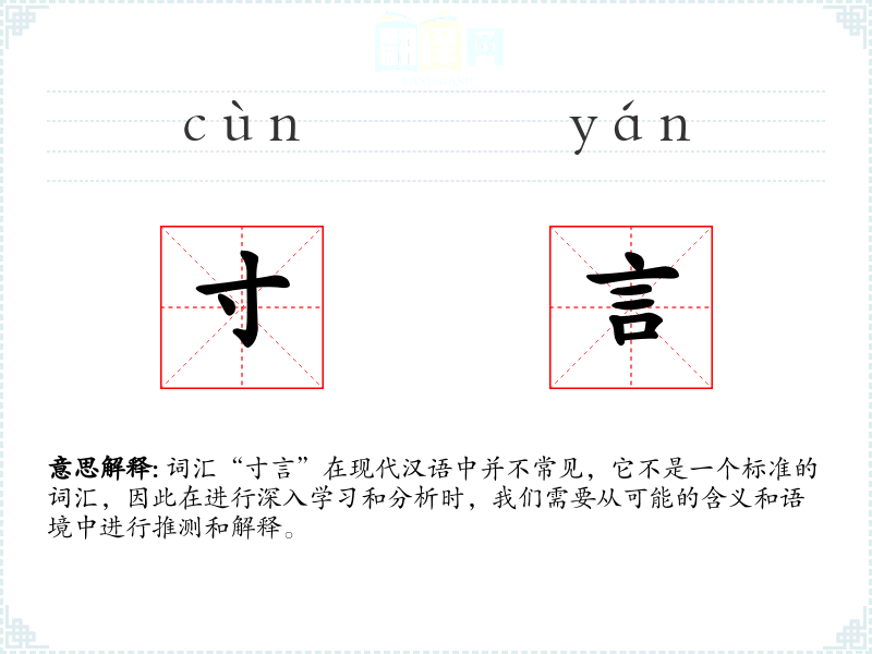 词汇“寸言”在现代汉语中并不常见,它不是一个标准的词汇,因此在进行深入学习和分析时,我们需要从可能的含义和语境中进行推测和解释。