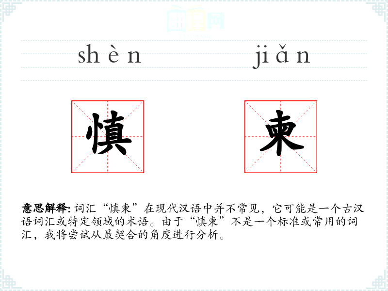 词汇“慎柬”在现代汉语中并不常见,它可能是一个古汉语词汇或特定领域的术语。由于“慎柬”不是一个标准或常用的词汇,我将尝试从最契合的角度进行分析。