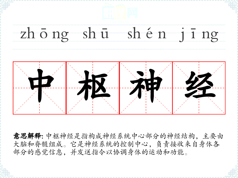 在不同语言中,如英语的“central nervous system”,德语的“zentrales Nervensystem”,都准确地反映了中枢神经的概念。