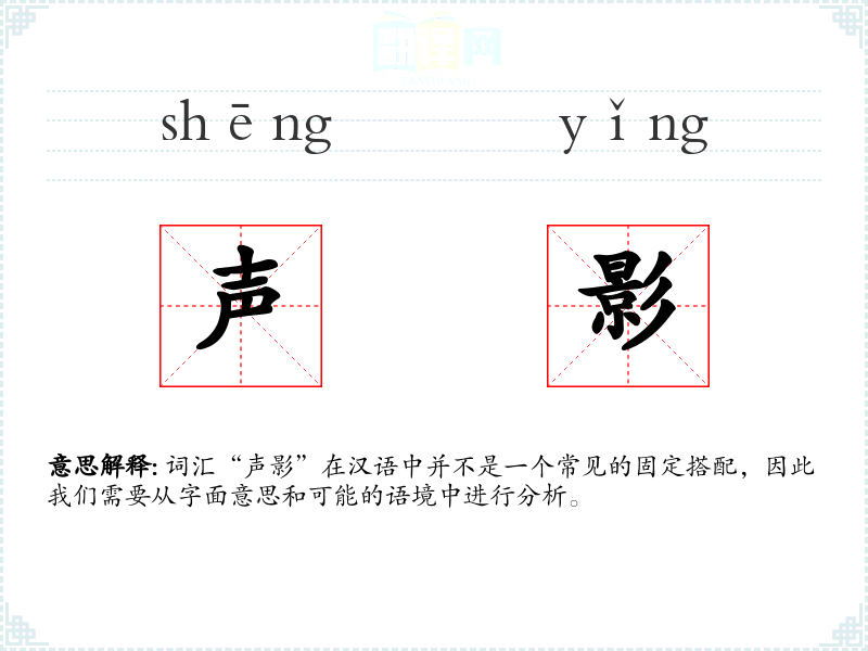 词汇“声影”在汉语中并不是一个常见的固定搭配,因此我们需要从字面意思和可能的语境中进行分析。