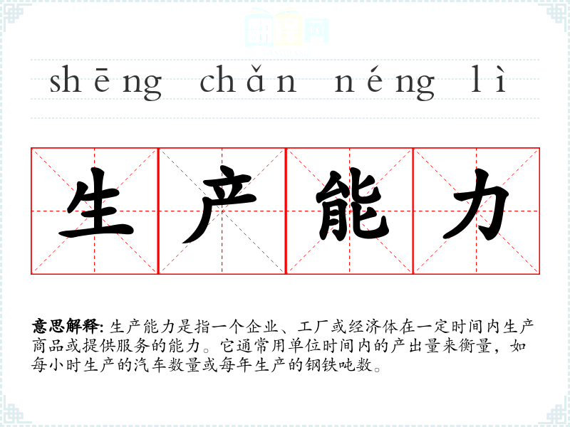 同义词:产能、生产力、生产效率 反义词:生产不足、产能过剩