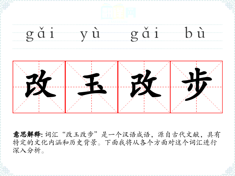词汇“改玉改步”是一个汉语成语,源自古代文献,具有特定的文化内涵和历史背景。下面我将从各个方面对这个词汇进行深入分析。