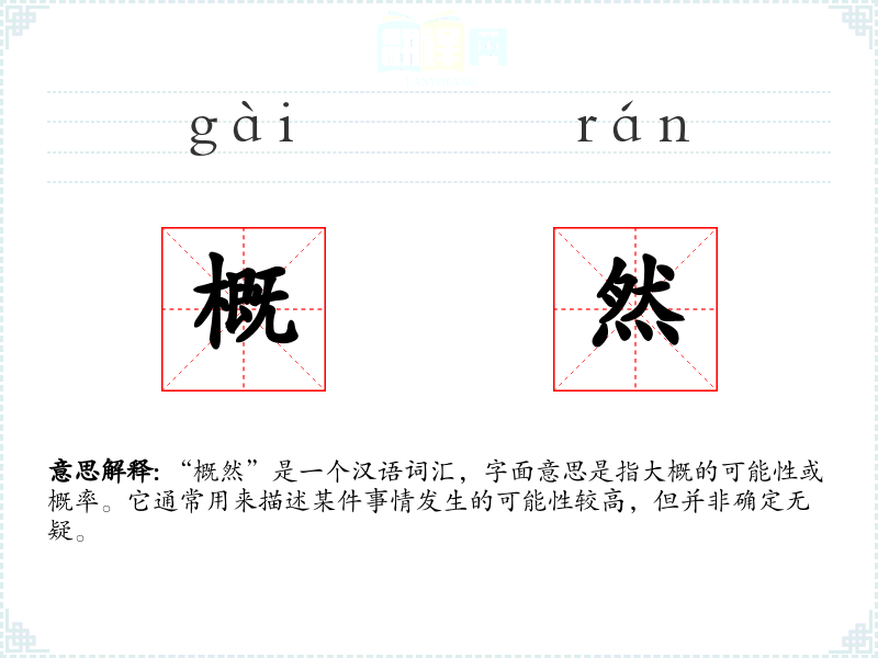 “概然”是一个汉语词汇,字面意思是指大概的可能性或概率。它通常用来描述某件事情发生的可能性较高,但并非确定无疑。