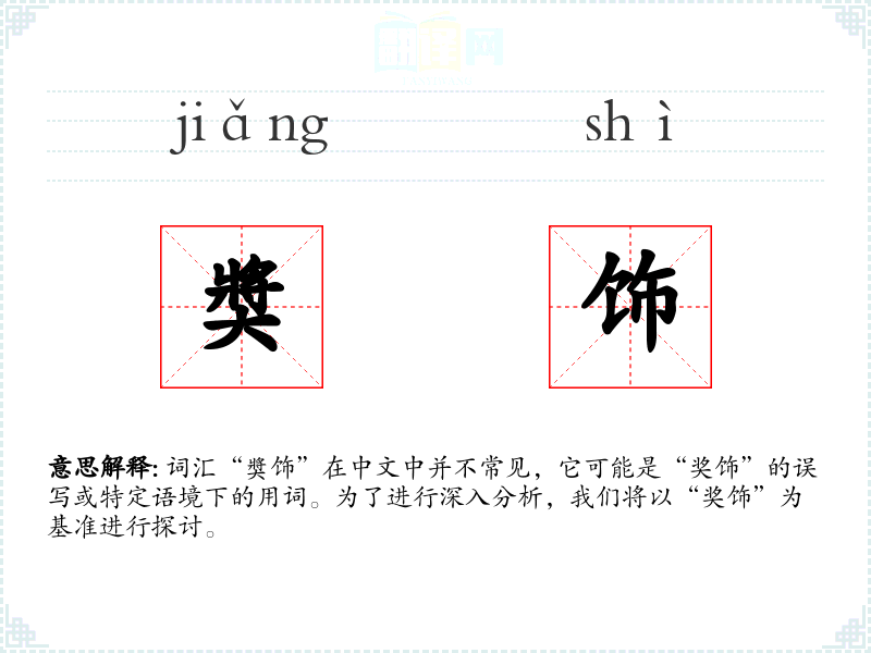 词汇“奬饰”在中文中并不常见,它可能是“奖饰”的误写或特定语境下的用词。为了进行深入分析,我们将以“奖饰”为基准进行探讨。