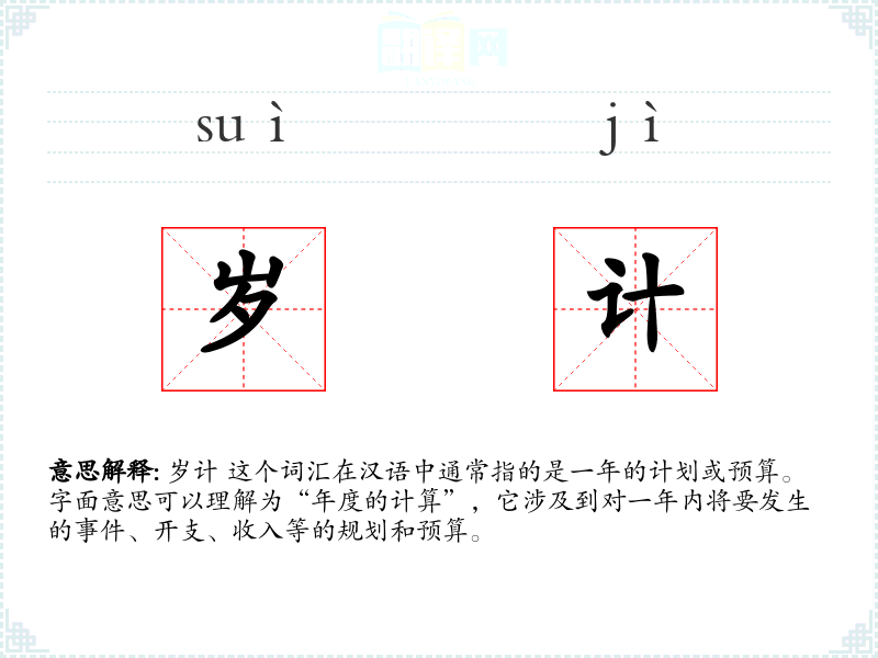 - 专业领域:在财务、会计或企业管理中,“岁计”可能特指年度财务计划或预算编制。