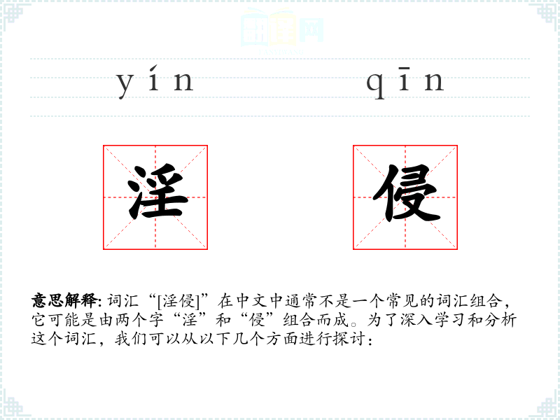 词汇“[淫侵]”在中文中通常不是一个常见的词汇组合,它可能是由两个字“淫”和“侵”组合而成。为了深入学*和分析这个词汇,我们可以从以下几个方面进行探讨: