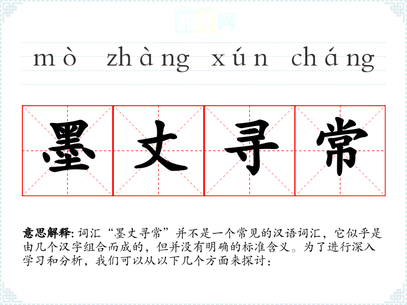 由于“墨丈寻常”不是一个标准词汇,我们无法对其进行深入的分析和理解。在语言学习和表达中,我们应该关注那些有明确含义和广泛应用的词汇,以确保沟通的准确性和有效性。