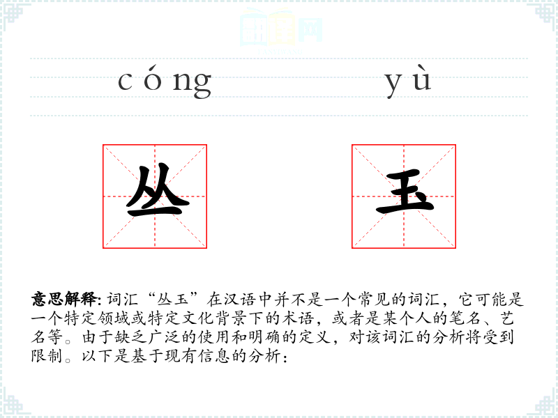 由于“丛玉”不是一个标准词汇,我们无法探讨其词源和历史演变。