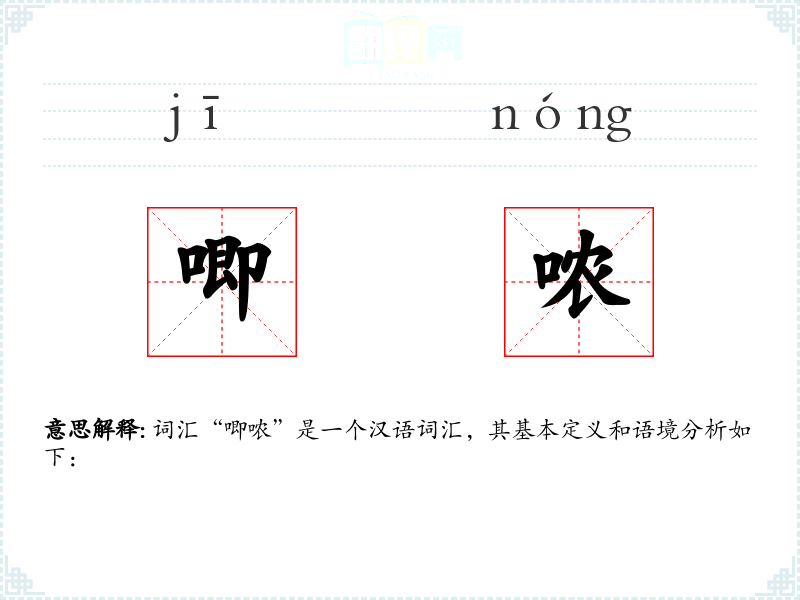 词汇“唧哝”是一个汉语词汇,其基本定义和语境分析如下: