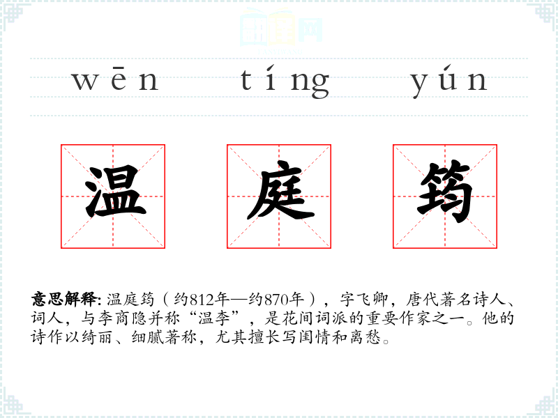 "温庭筠"的意思解释、温庭筠是什么意思由翻译网汉语词典查词提供。
