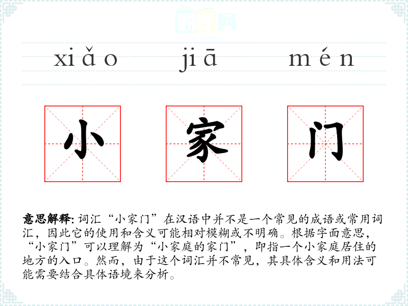 “小家门”这个词汇虽然不常见,但它可以用来表达小家庭的私密性和温馨感。在语言学*和表达中,了解和运用这样的词汇可以丰富表达的层次和深度。
