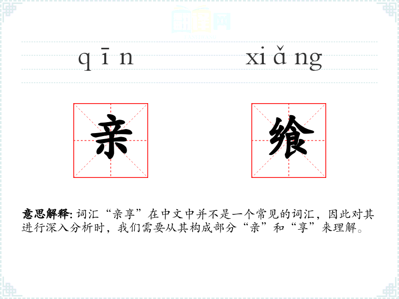 词汇“亲享”在中文中并不是一个常见的词汇,因此对其进行深入分析时,我们需要从其构成部分“亲”和“享”来理解。