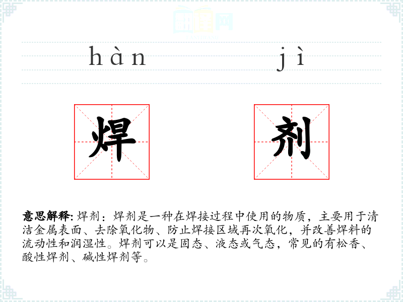 - 反义词:无(焊剂在焊接过程中是必需的,没有直接的反义词)
